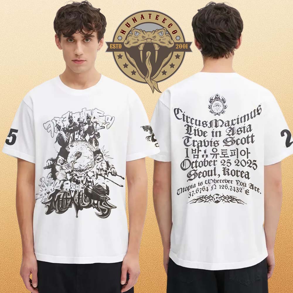 👉 Shop the Travis Scott Merch Circus Maximus Tour Live In Asia Seoul South Korea On October 25 2025 Unisex T-Shirt at Nunateeco today.